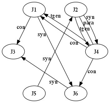 The paradigmatic relation is symmetric. For dating, another hint (term c) must be considered (material, elementary genetic classification, textual):