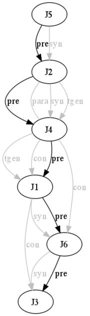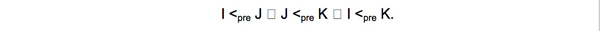 Inscription I syntagmatically precedes a second inscription J if the text of J follows the text of I with respect to a larger text that contains them both:
