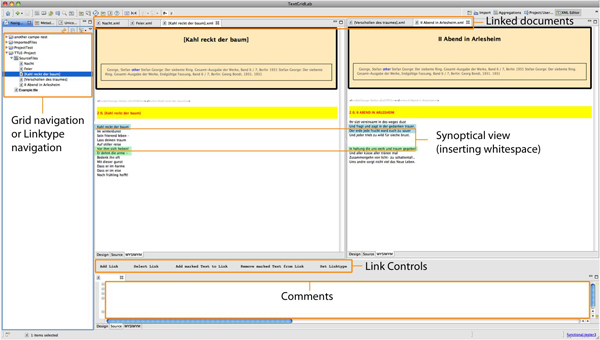 Figure 2To work with linked texts, TTLE will offer different views, always directly comparing two documents in two viewports. If more than two documents form a link, each of these documents can easily be selected and made visible in one of the two viewports. At a later stage of the project plans are to use a customly defined XSL-transformation to even more adapt the displayed data to the needs of the researcher.