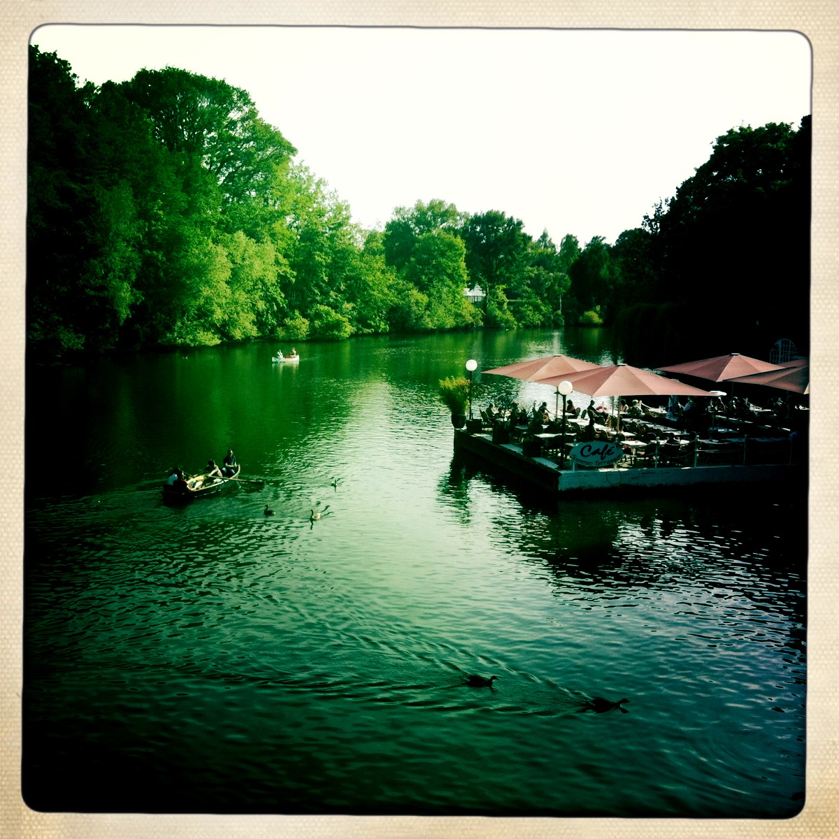 First thing one has to know is, that Hamburg certainly is the most beautiful city in the world (at least people in Hamburg think so). Well, we know it is raining allmost every day and as Hamburg is a metropole it is big and noisy. We may not have the powerful livelyness of New York City or the romantic charms of Paris, but what we do have is water and plants and we have more bridges than Venice. When I say water, I do not (only) mean the water coming from up above. In the first place I mean the rivers Elbe and Alster and the cosy little canals spreading all over the city. On asunny day one can meet almost each and every living soul in Hamburg on or by the water. Workers in the port and on the Elbe, sailors on the alster and canoeists, rowers and captains of rubber boats on the canals and the Stadtpark lake. People who aren’t on the water at the week-end are to find at the shore, which we lovingly call “Waterkant”, literally “the water’s edge”, in the dialect of Hamburg. Here you find vast lawns and parks and even a beach right in the city. I surely don’t have to mention that there a cafés everywhere, as you can see on the picture above. So if you should have some free time during the DH2012, we’ll meet at the Waterkant!